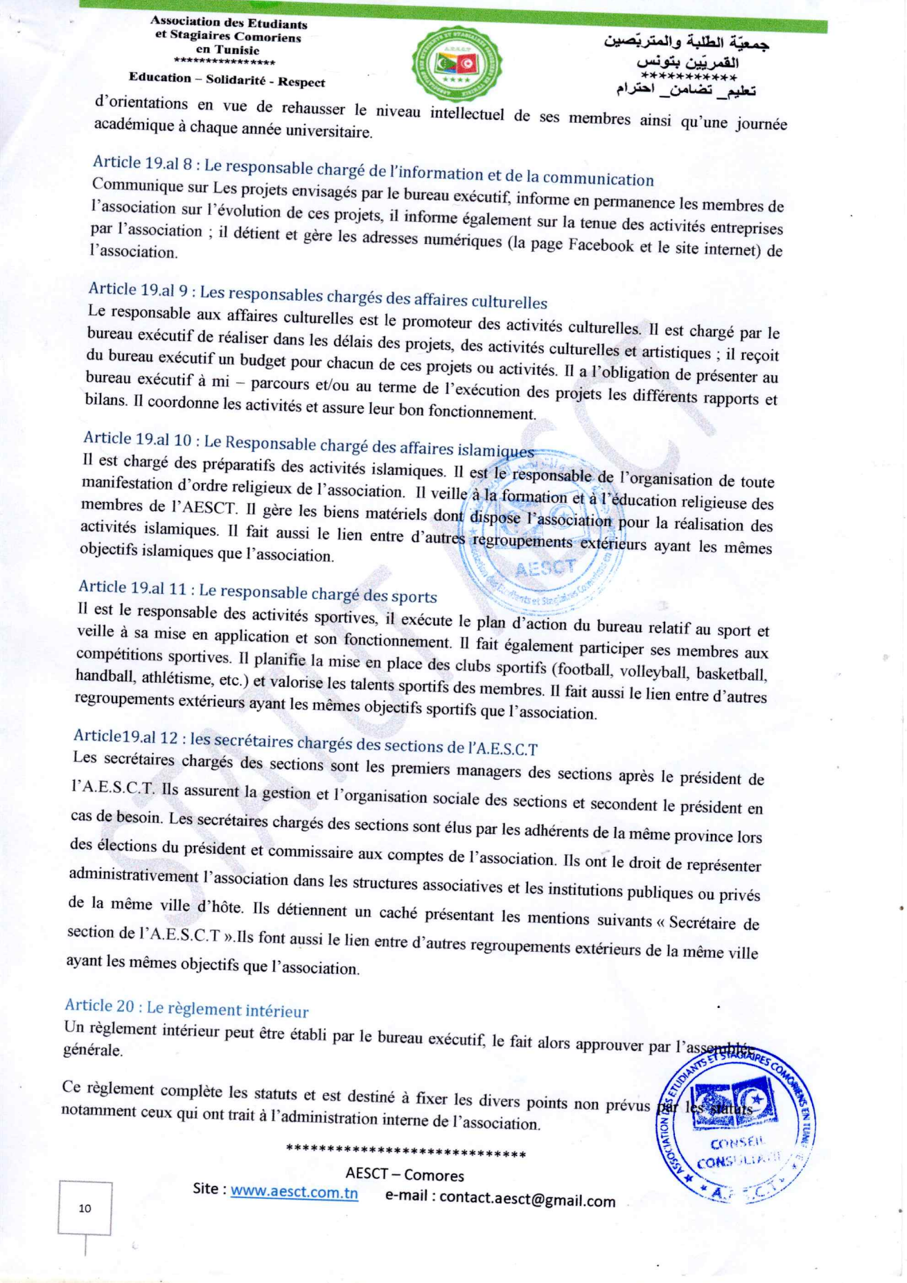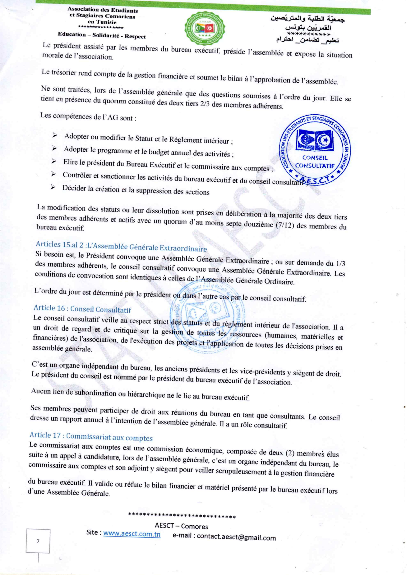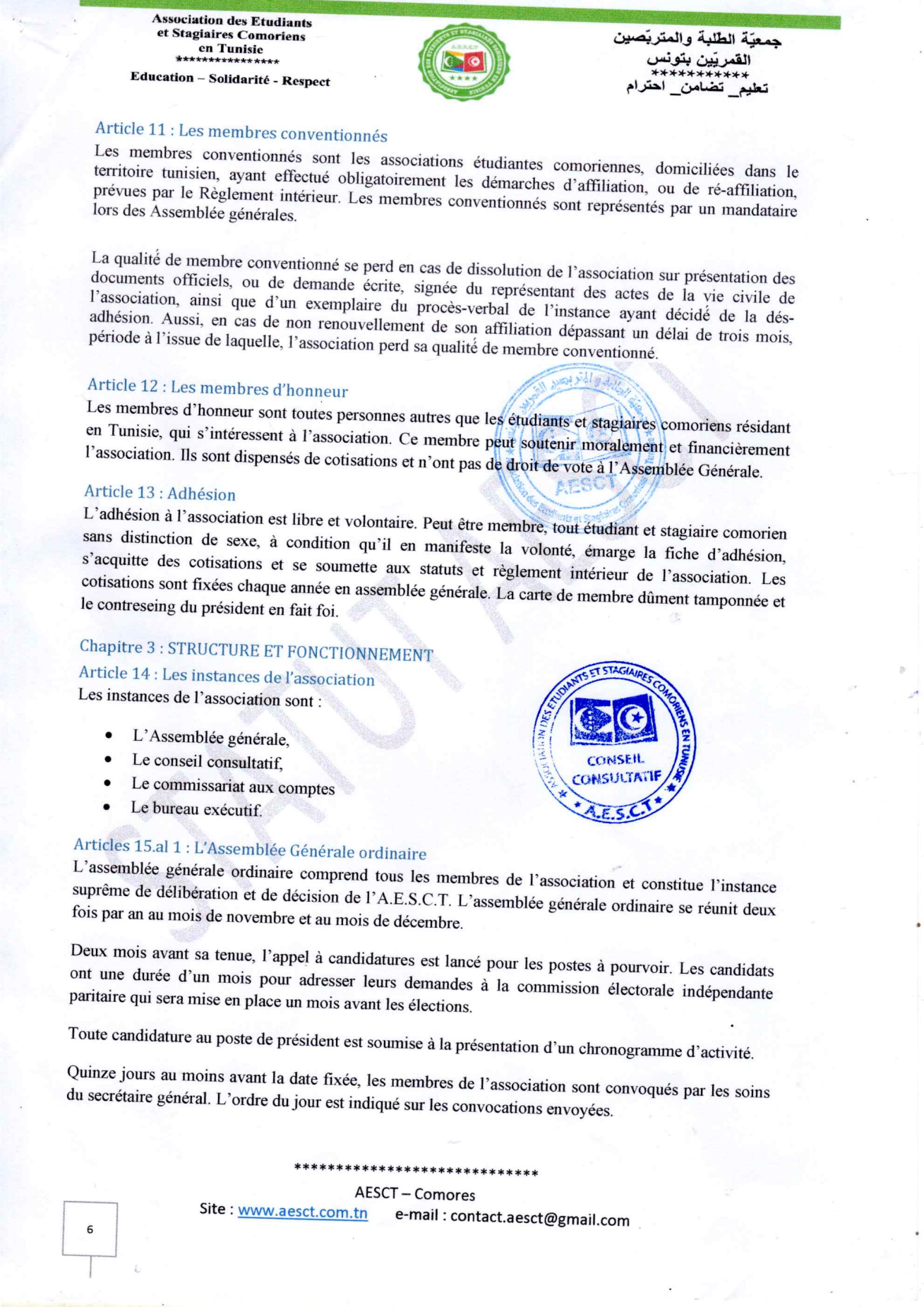 Statuts et règlement intérieur AESCT
