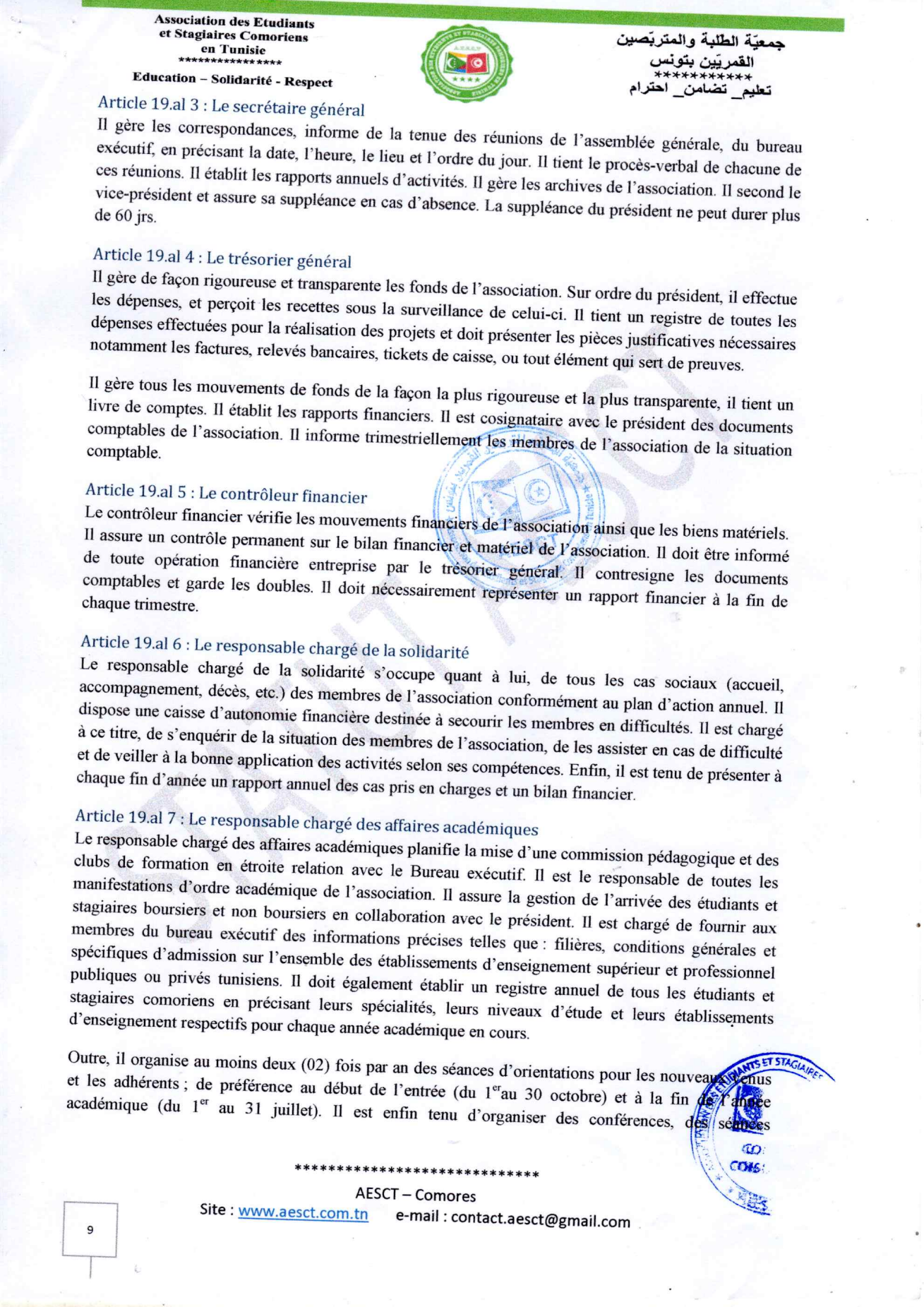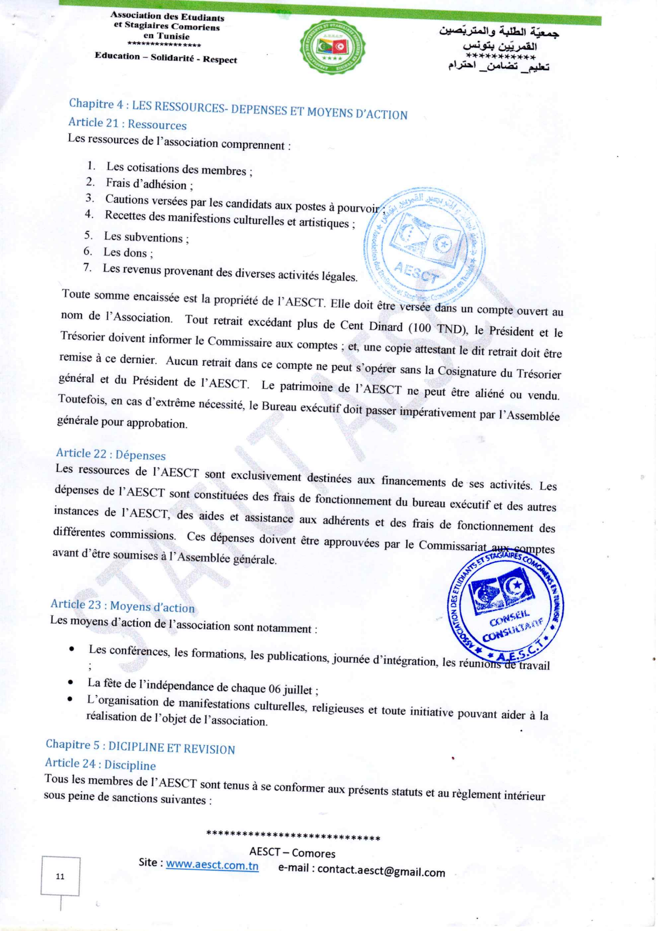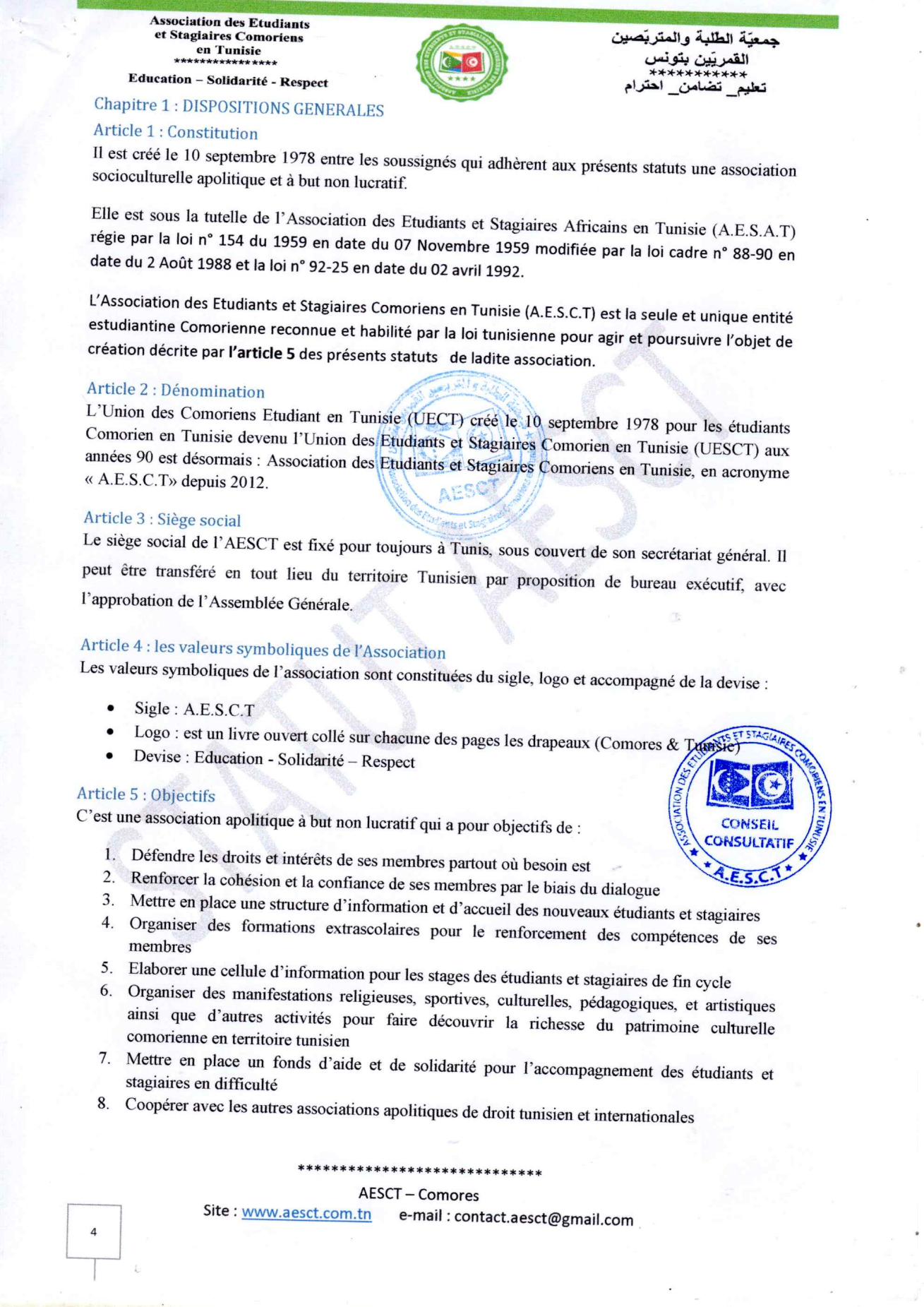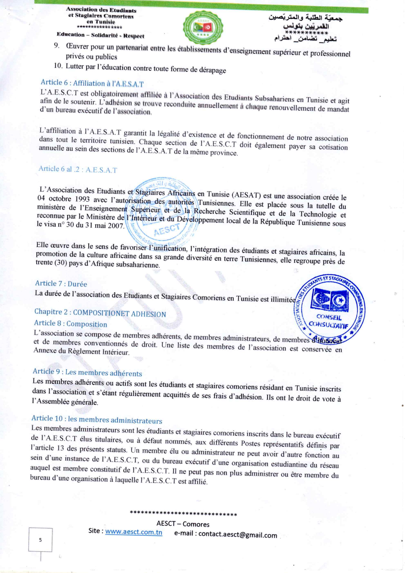 Statuts et règlement intérieur AESCT